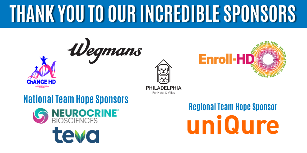 We invite all local companies and small businesses to sponsor this Team Hope Walk. We depend on the generosity of sponsors, and by sponsoring a walk your company will be supporting a great cause as well as engaging in an exciting marketing opportunity within the local community. If your company is interested in sponsoring the walk, please email teamhope@hdsa.org!